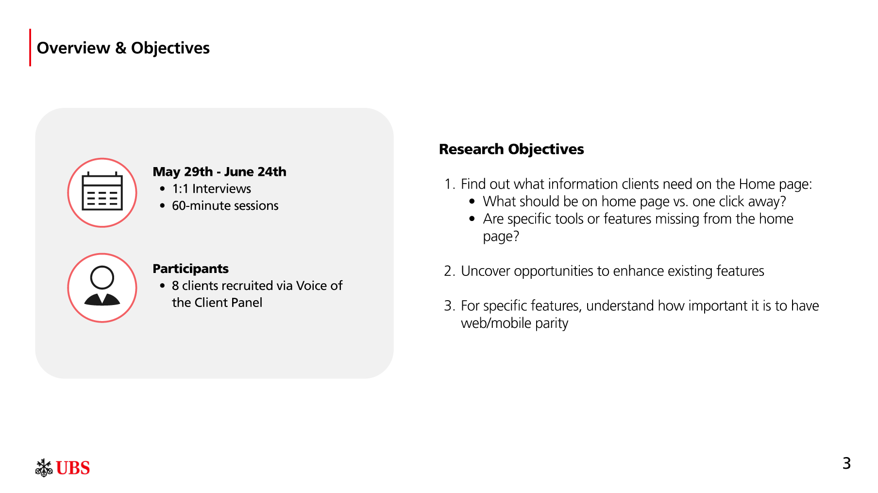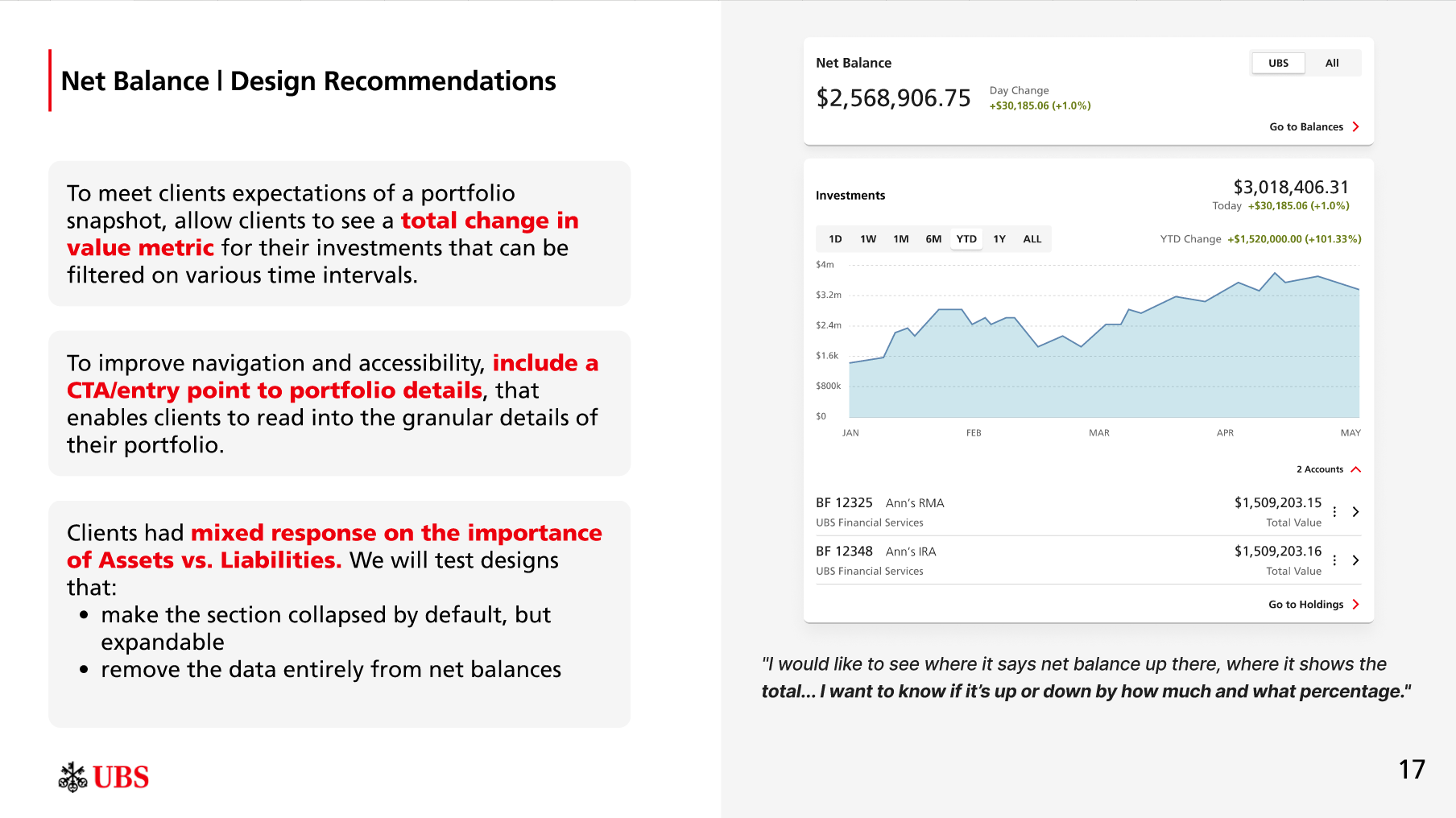 In Q2 2025, I led a 2 month engagement to uncover critical opportunities to not only enhance, but reimagine the UBS client homepage.